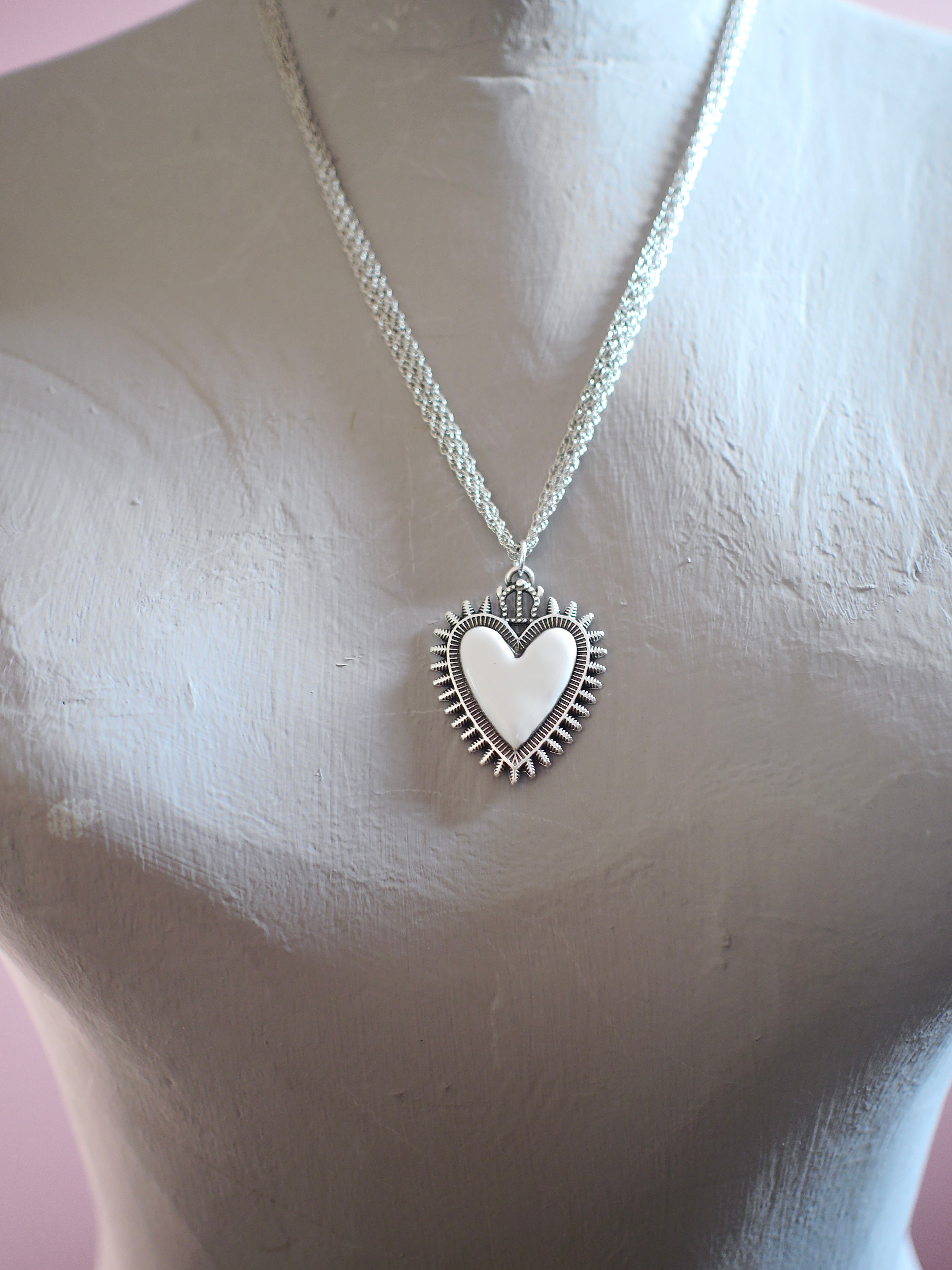 Catena in ottone a tre fili 50-55 cm regolabile, finitura argento opaco.